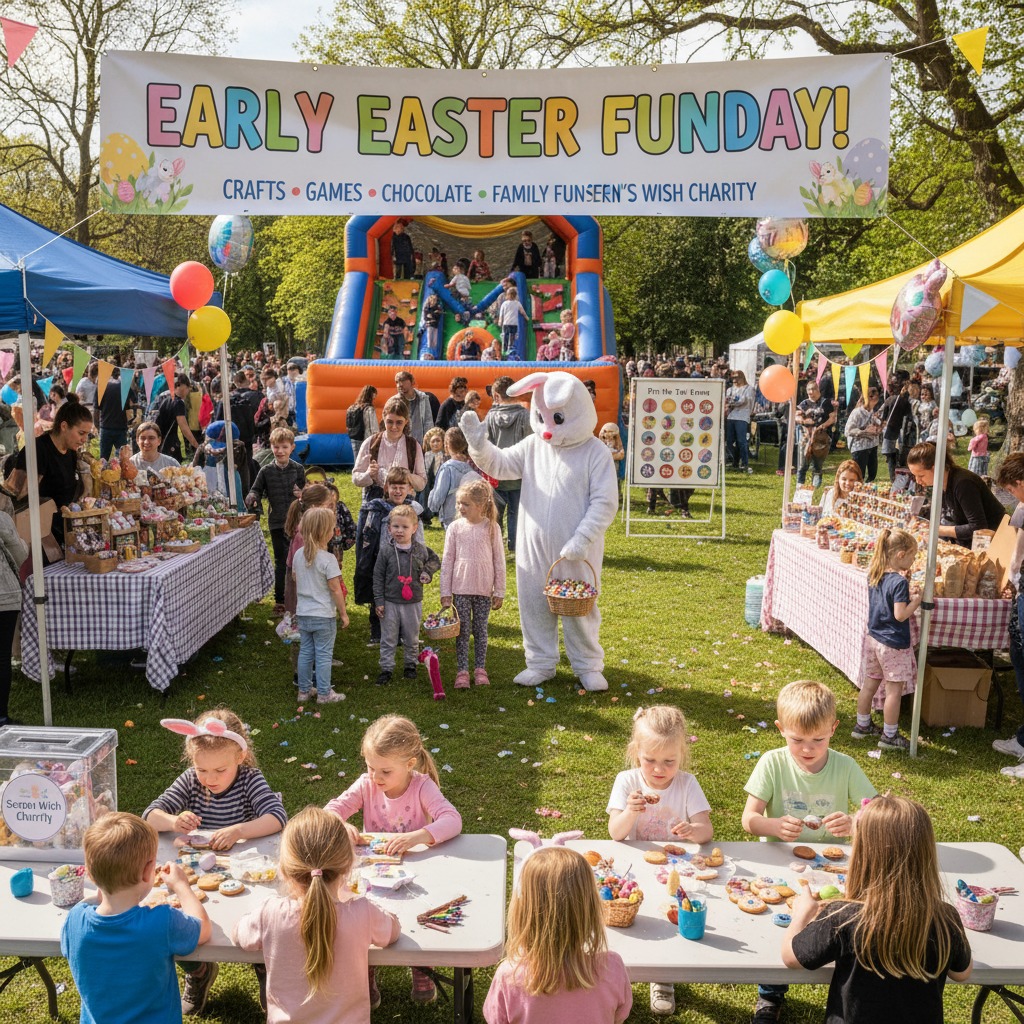 Get into the Easter spirit early with a bright, hands‑on Funday packed with crafts, games, stalls, and family‑friendly activities — all before the school holidays even begin. Children can dive into creative Easter makes, enjoy plenty of fun with friends, meet our special visitor the Easter Bunny, and, of course, enjoy lots of chocolate along the way. It’s a brilliant way to start the Easter excitement while supporting Seren’s Wish Charity and our work with local families.